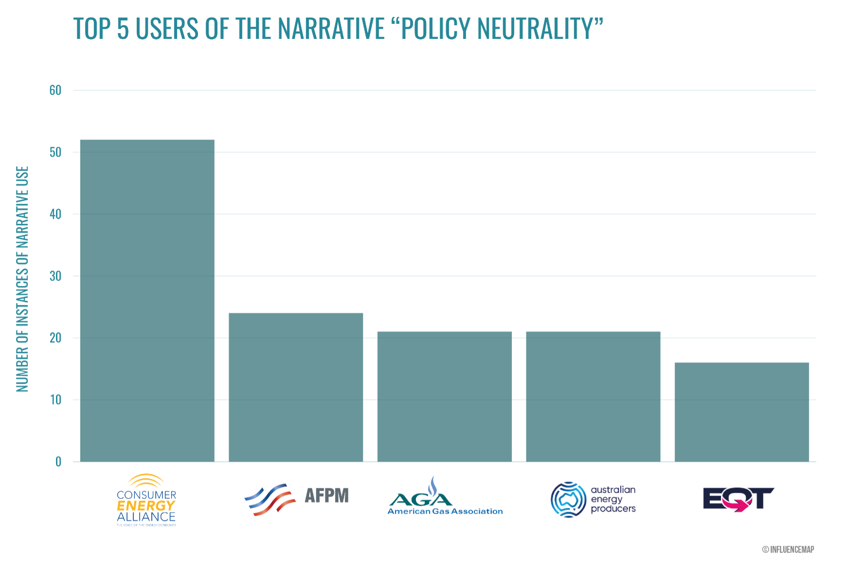 The oil and gas sector pushes the “Policy Neutrality” narrative to insert fossil-fuel reliant technologies into policies and discussions that are specifically aimed at reducing fossil fuel dependence. As such, use of this narrative by fossil fuel interests reopens the debate on the best technology pathway for climate mitigation, diminishing the central importance of reducing fossil fuels and encouraging a “technology neutral” approach to reducing fossil fuel emissions instead.